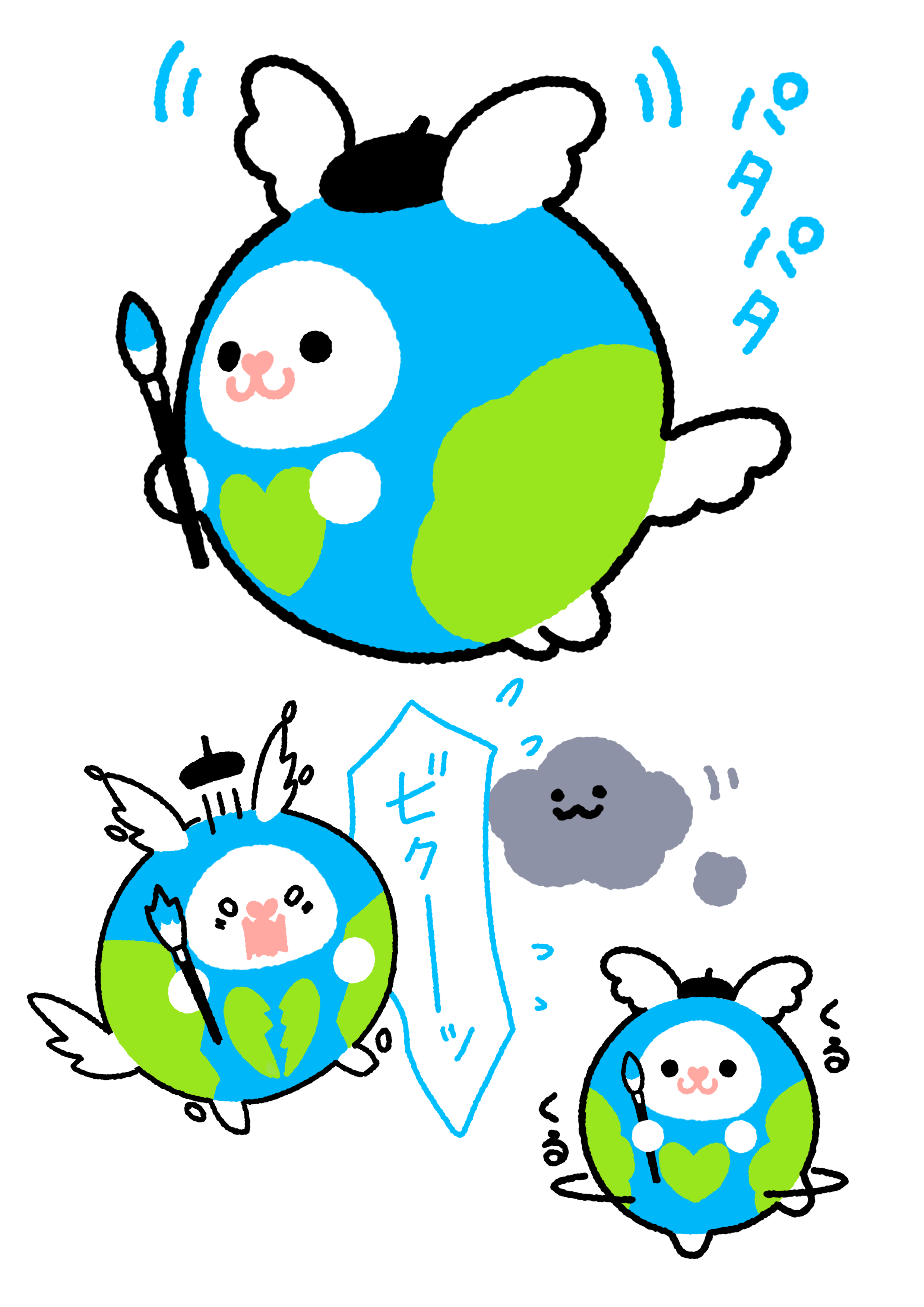 地球の明日(アース)あっての私たちの未来。みんなの未来をえがいてまわる地球をキャラクターにしました。