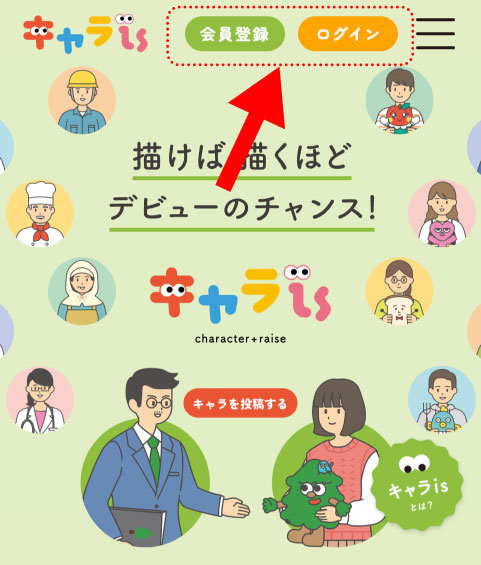 このページの下にある「応募する」ボタンからキャラを投稿する!(審査後、応募作品はコンテストページに掲載されます)