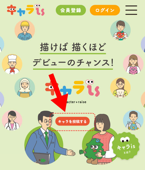 このページの下にある「応募する」ボタンからキャラを投稿する!(審査後、応募作品はコンテストページに掲載されます)